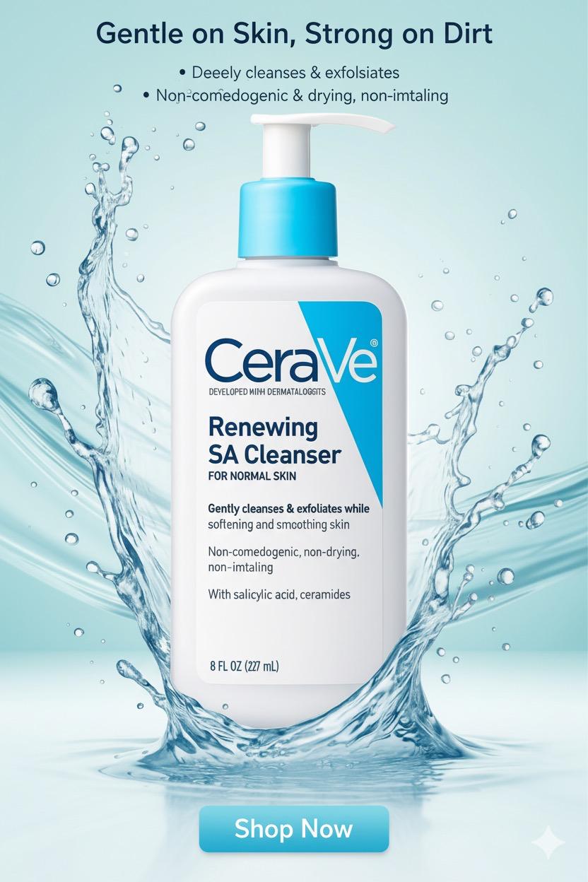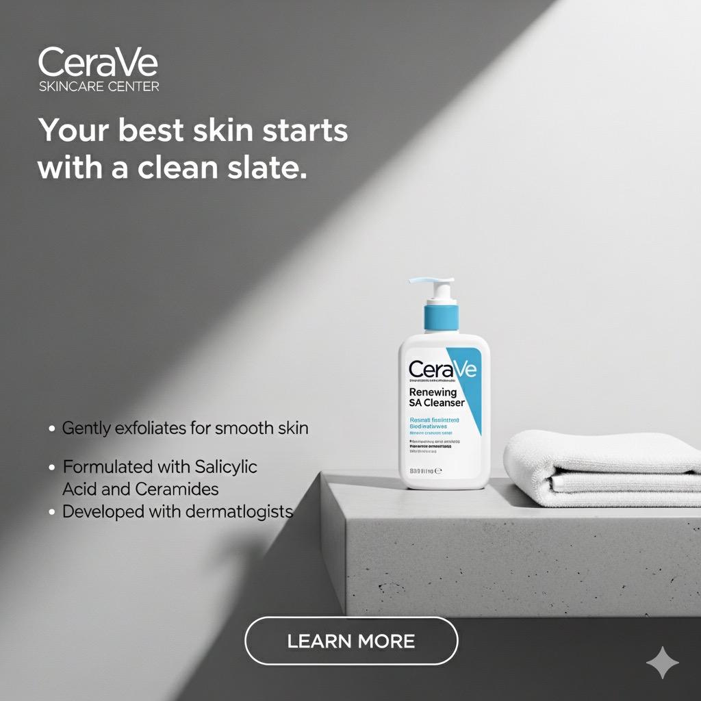 Cerave Renewing Sa Cleanser And Hydrating Cleanser With Salicylic Acid & Ceramides – (237ml)
